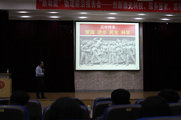 5月19日下午,中国科学院上海光学精密机械研究所党委书记、技术委员会副主任邵建达受邀在金家岭校区图文报告厅为PA集团学生作了题为《创新激光科技、服务国家、造福人民》的“新动能”物理学前沿学术报告暨硕士招生宣讲。学院院长滕冰主持报告会。