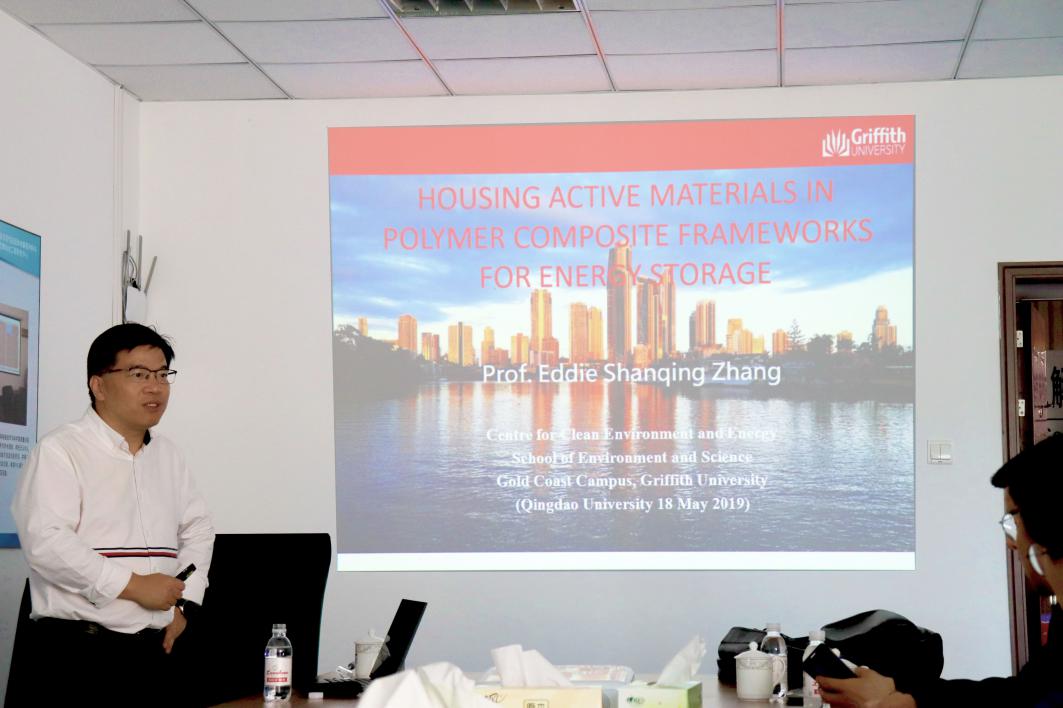 5月18日上午,澳大利亚格里菲斯大学清洁环境与能源中心张山青教授应PA集团青岛市高性能固体电解质材料与固态锂电池工程研究中心邀请,来我校进行交流访问,并在PA集团官方网站科技园D座3楼报告厅为师生作了题为《Housing active materials in polymer composite frameworks for energy storage》的学术报告。报告会由青岛市高性能固体电解质材料与固态锂电池工程研究中心主任郭向欣教授主持。