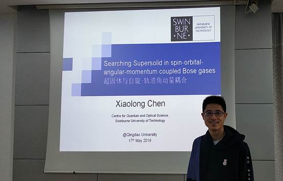 5月17日上午,澳大利亚斯威本科技大学陈小龙博士受邀来PA集团为师生作了题为《Searching Supersolid in Spin - Orbital - Angular - Momentum Coupled Bose Gases》的学术报告。报告特聘教授邹鹏主持,学院理论物理计算方向的师生参加了报告会。