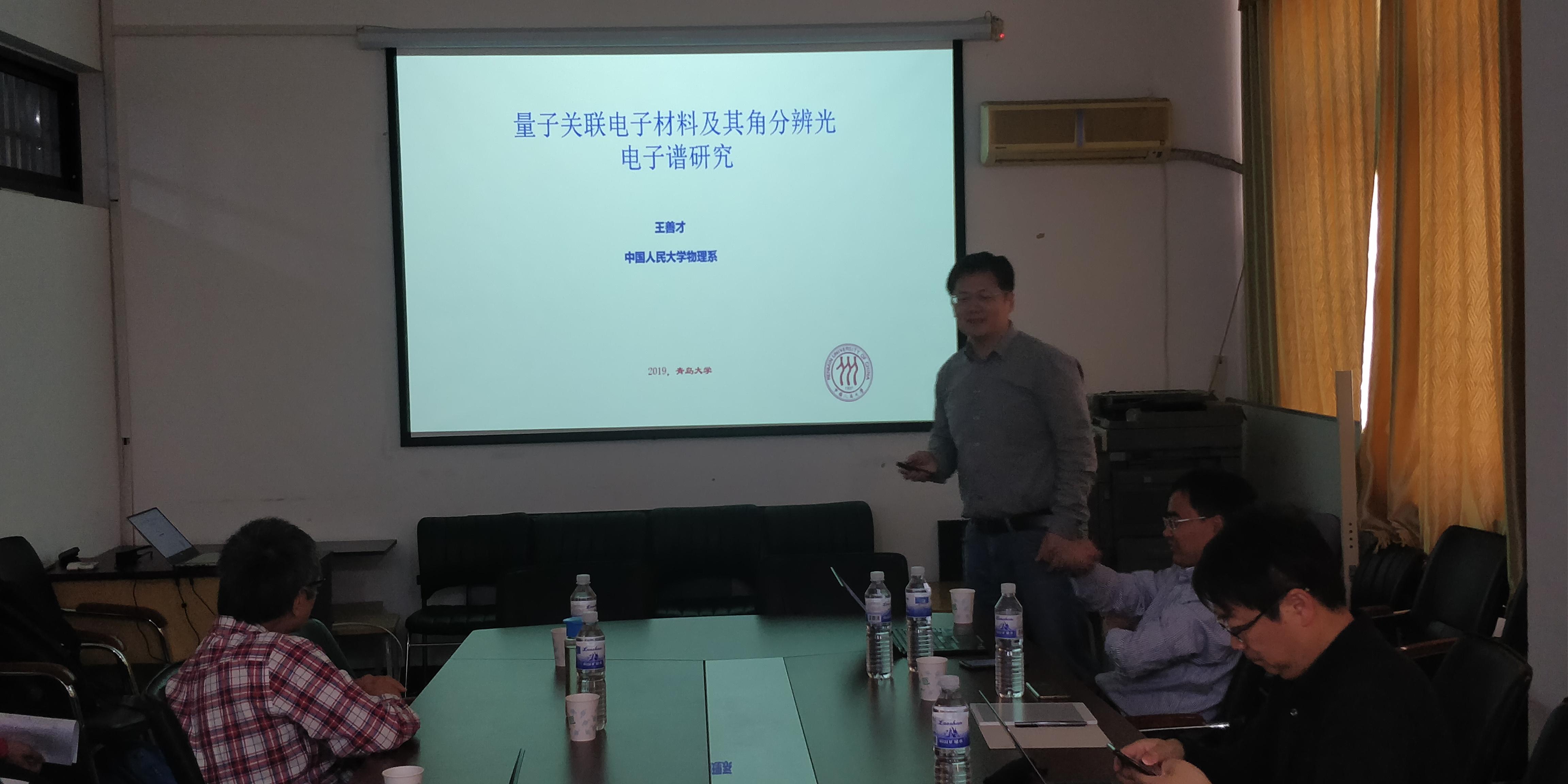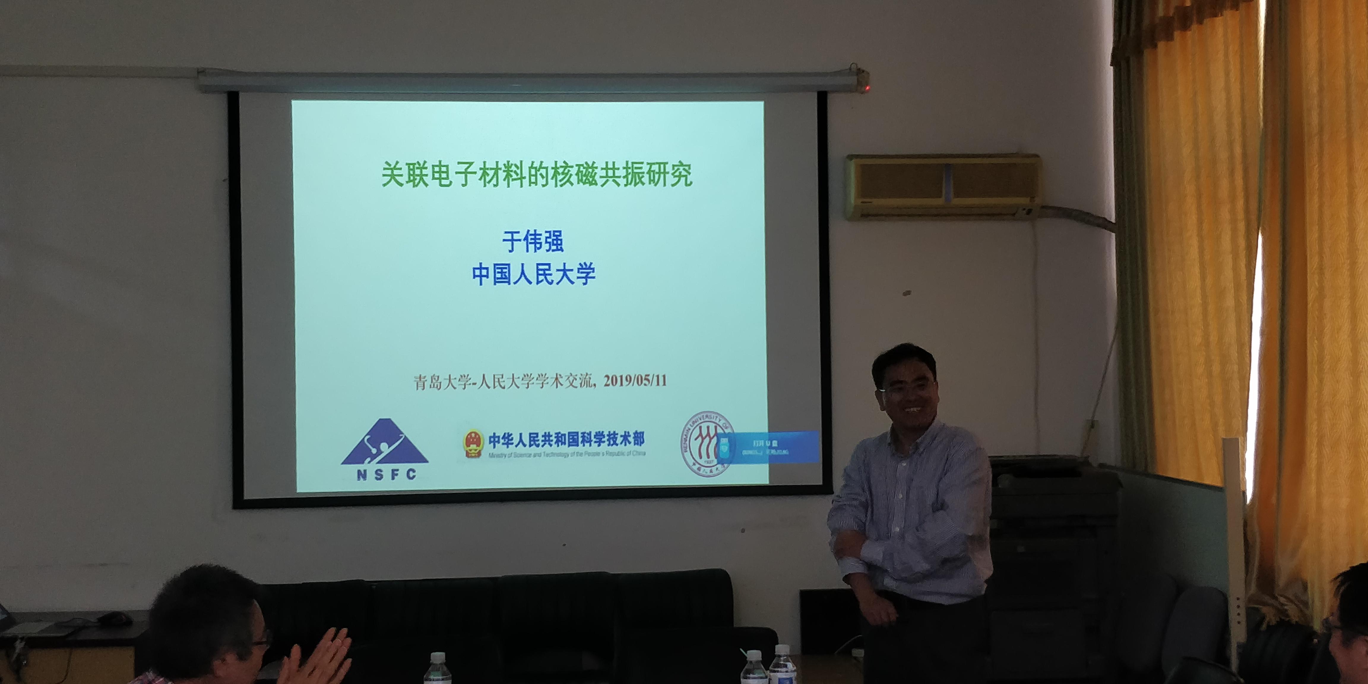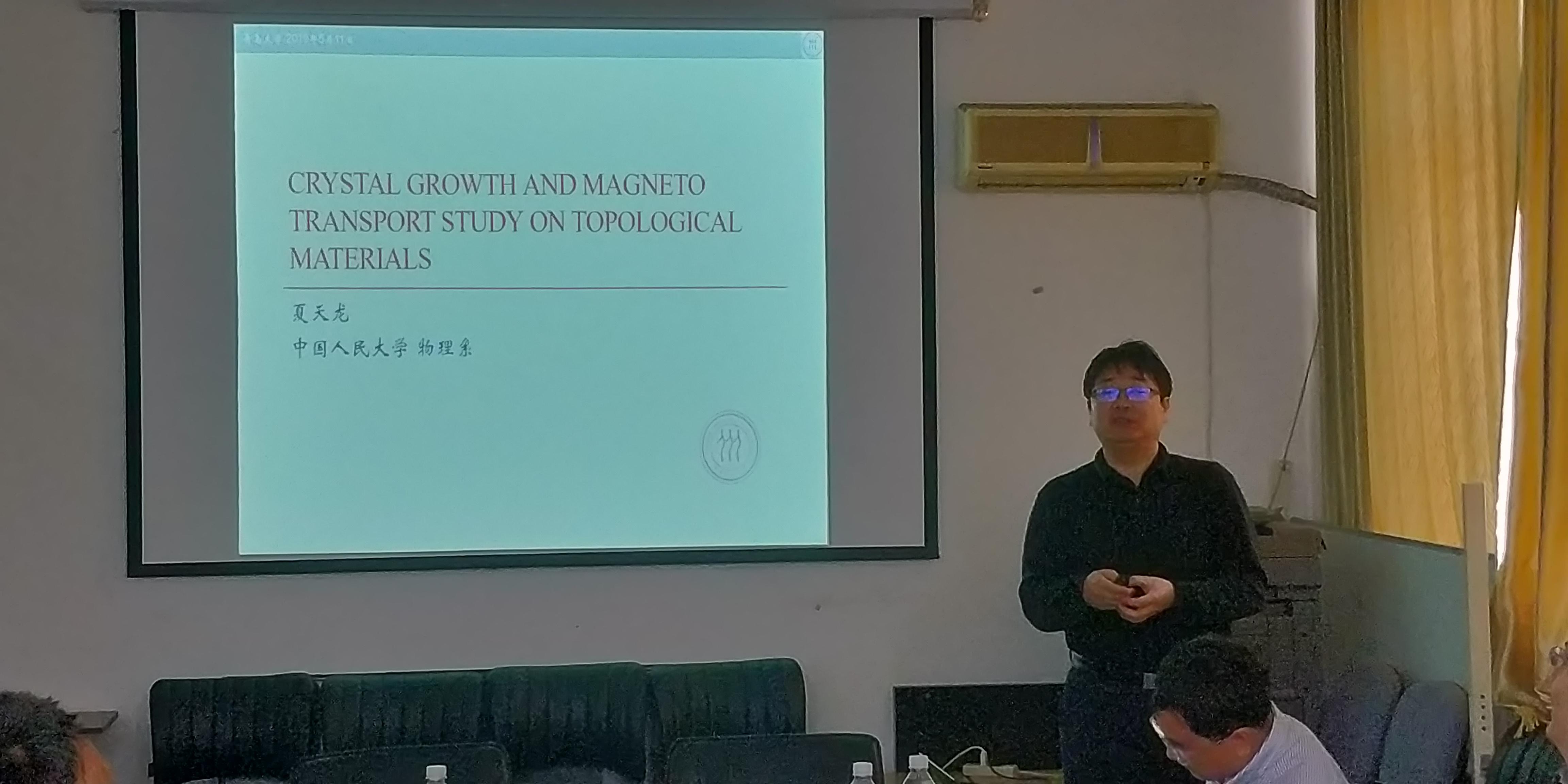 会上,于伟强教授简要介绍了中国人民大学物理系的发展情况、主要团队、实验计算设备以及研究成果等。齐燃副教授作了《超冷原子气体中的新奇量子现象》学术报告,并介绍了人大的原子与分子物理研究团队。王善才教授作了《极大磁阻材料的角分辨光电子谱研究》报告,并介绍了自然角分辨光电子谱研究团队、研究成果以及学生培养情况。夏天龙副教授作了《拓扑材料的单晶制备与磁输运物性研究》报告,并介绍了自己的实验设备、研究成果以及学生培养情况。俞榕教授作了《铁基超导体中的轨道物理与电子关联》报告,并介绍了自己的强关联电子系统的理论研究方向以及招生情况。于伟强教授作了《关联电子材料的凝聚态核磁共振研究》报告,并介绍了自己的核磁共振实验室研究团队、实验设备以及研究成果和学生培养情况。最后,人大物理系行政秘书赵建芝老师介绍了人大物理系的招生以及暑期学校的有关信息。