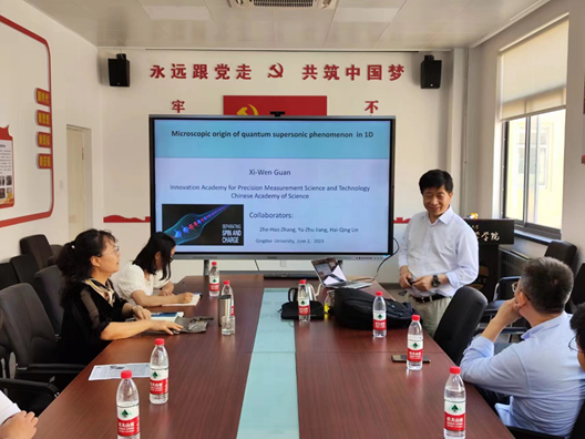6月2日下午,武汉中国科学院精密测量科学与技术创新研究院的管习文研究员受邀来PA集团进行学术交流访问,并为师生作了题为《一维玻色液体中量子超声现象的物理起源》的学术报告。报告由物理学院邹鹏副教授主持。出席报告会的有院长滕冰教授、袁峰教授以及相关老师、部分本科生和研究生。