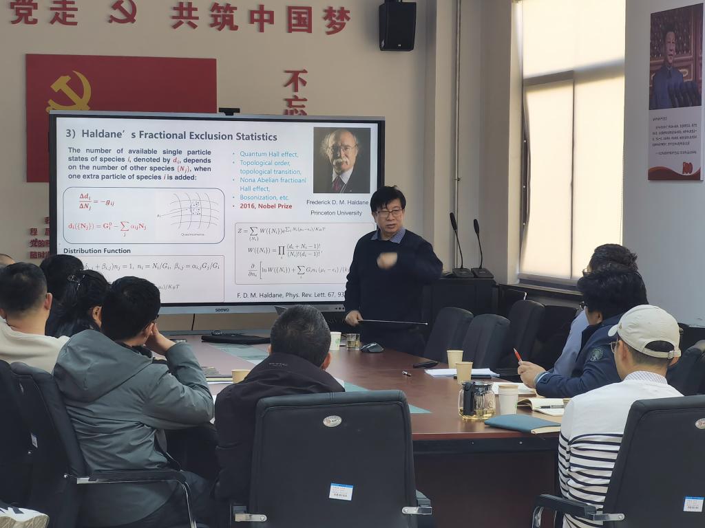 专题报告中,管老师从统计的角度出发,深入浅出介绍了统计物理学的历史发展,并顺应历史脉络向PA集团师生依次介绍了玻尔兹曼统计、玻色-爱因斯坦统计、费米统计以及分数统计等概念并详细阐述研究者们在提出相关概念所依据的简洁、优美以及有力量的科学思想,引发了听众们极大的兴趣与讨论。