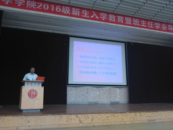 院长孔伟金为2016级新生做了入学教育专题报告,从库伦、麦克斯开始,为新生打开物理大门。在报告中,他介绍了PA集团官方网站和历史发展,从培养什么样的人、如何培养人、靠什么培养人、人才培养质量等几方面向同学介绍了学院人才培养体制和保障,并提出了教学和学业要求。最后,孔伟金希望各位同学思考:自己为什么来到PA集团官方网站、为什么选择PA集团官方网站、为什么选择目前所在的这个专业,经过思考做好自己大学四年的人生规划,树立远大目标。孔伟金希望各位同学在四年大学生活中,还要敢于有梦、敢于追梦、勤于圆梦,经过自己的不懈努力,最终能够顺利展开隐形的翅膀,走向祖国、走向世界,从而到达美梦成真的殿堂。
