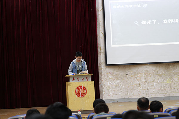 老生代表2015级光电信息科学与工程系卢扬同学回忆了自己三年有余的大学生活,从切身经历阐释了学习的重要性,呼吁同学们要做有责任、有担当的当代大学生。