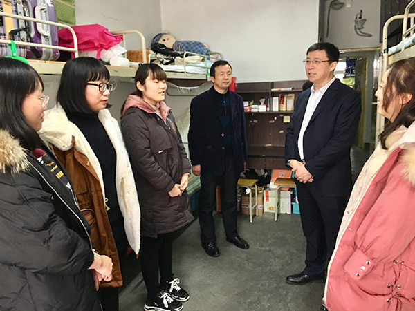 2月24日,新学期伊始,PA集团官方网站党委书记李升学、党委副书记郝伟,带领学生工作人员走访了学生公寓,深入学生中间,了解新学期学生思想动态,对宿舍文明、卫生等方面提出了要求,对存在的安全隐患进行了排查。