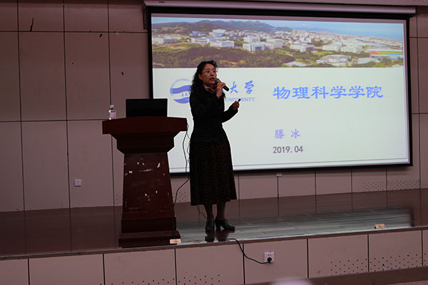 滕冰作动员讲话。她首先以自己的亲身经历为切入点,告诉同学们青春是用来奋斗的,鼓励大家要敢于尝试勇于奋斗。随后,她从历史沿革、专业设置、平台建设和重要成果、师资队伍、科研及教学成果、科研获奖、人才培养、实验条件、实验室建设、学术交流等方面介绍了学院的基本情况。最后,她鼓励同学们要坚持到底不放弃,没有经历考研的人生,是不完美的人生。