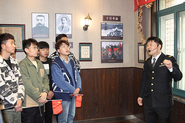参观期间,讲解员对“五四运动与青岛”的有关历史进行了详细介绍,大家通过老照片、老档案、纪录片回顾了德占青岛、日德战役、签订“二十一条”、新文化运动兴起、巴黎和会外交失败、五四运动爆发、中国共产党成立等一系列历史事件,知悉了“保家保国,还我青岛”的历史渊源,观看了《胶州湾独占地图》《民国家书》《山东省财政厅洪宪年号买税契》等若干珍贵史料,全面了解了五四运动的社会背景、基本过程和历史意义。参观结束后,全体青年学生重温入团誓词并郑重宣誓。