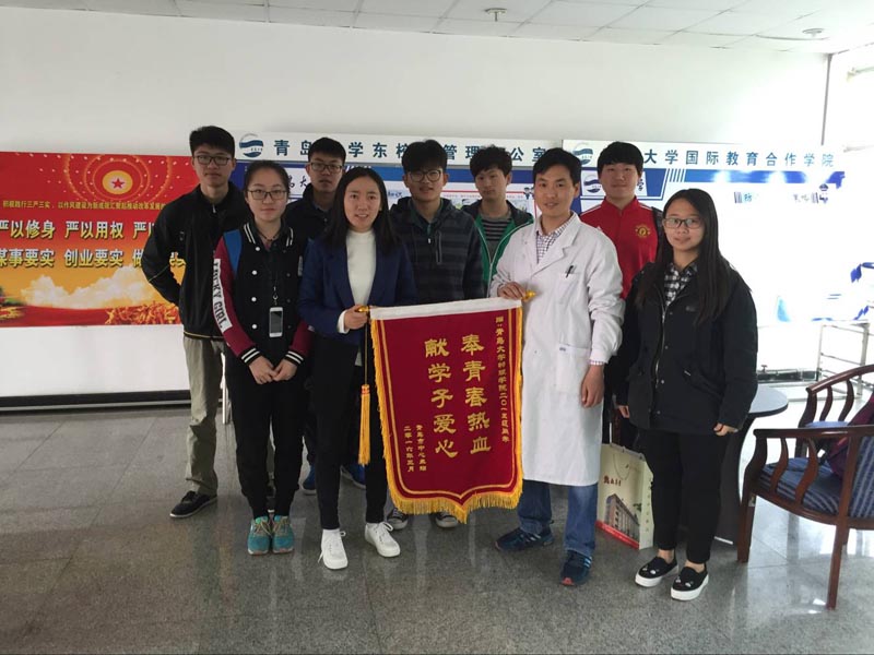 4月1日上午,青岛市中心血站工作人员携带一面写有“奉青春热血,献学子爱心”的锦旗来到PA集团官方网站,感谢物理学院2015级学子对无偿献血的支持。