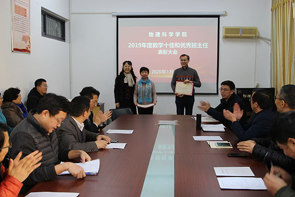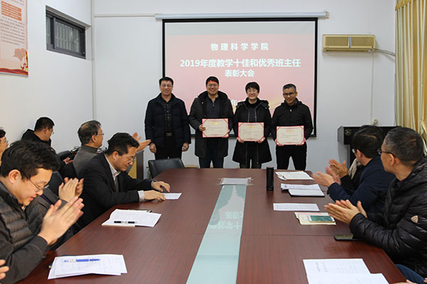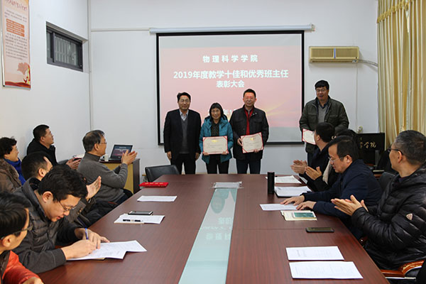 随后,李升学、滕冰、王乙潜、龙云泽依次为教学十佳教师和优秀班主任颁发了荣誉证书。教学十佳代表云茂金发言,表示一个好老师不仅要上好课、做好科研,还要有人格上的感召力,自己将会不忘初心了、潜心育人,使学生度过一个快乐、幸福、充实、值得回忆的四年大学生活。优秀班主任代表钟石磊发言,表示班主任工作需要把“细心、耐心、爱心和责任心”落实到学生成长的每一个环节上,当看到学生各方面的能力在班主任的帮助下逐渐成长起来的时候,会深刻体会到班主任工作的意义。