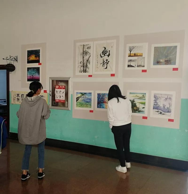 校友们在博逸楼一楼大厅参观了精心准备的书画展。面对一幅幅充满艺术气息的作品,他们不禁赞叹师弟师妹们的审美潜质,赞扬师弟师妹们对艺术的创作能力和理解,也为师弟师妹们丰富的大学生活感到高兴。