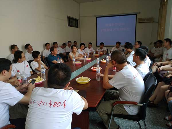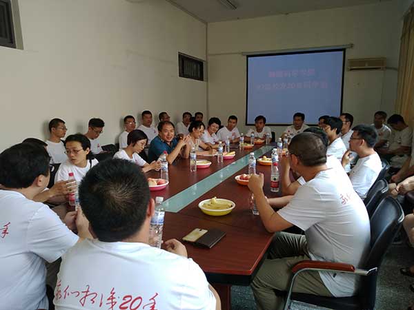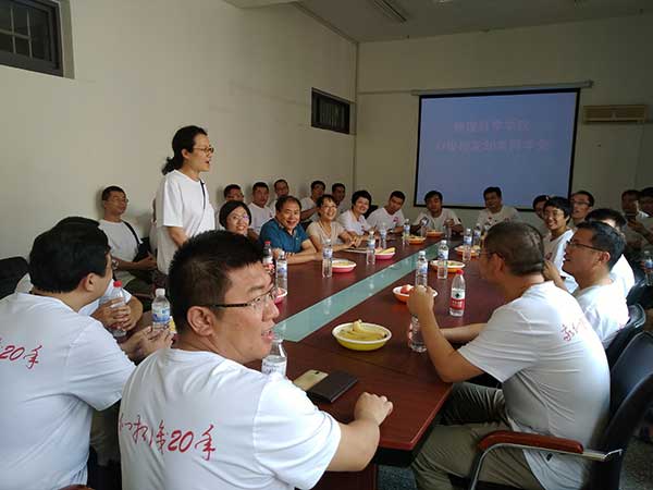 校友们向院领导赠送了20年纪念衬衫,并感谢学院提供相聚的条件,祝福学院越来越好。座谈会后,全体校友合影留念。