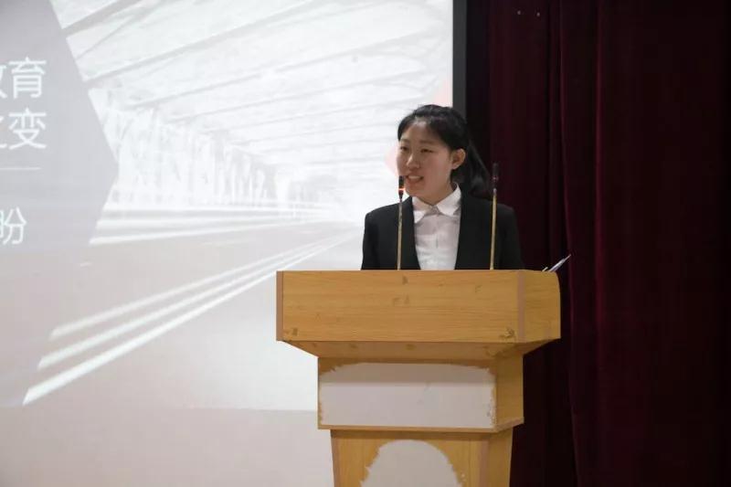 高盼盼同学从师资、设施、高考、发展趋势四个方面介绍了教育之变。