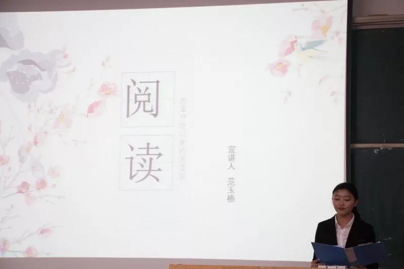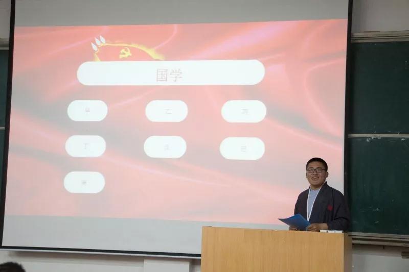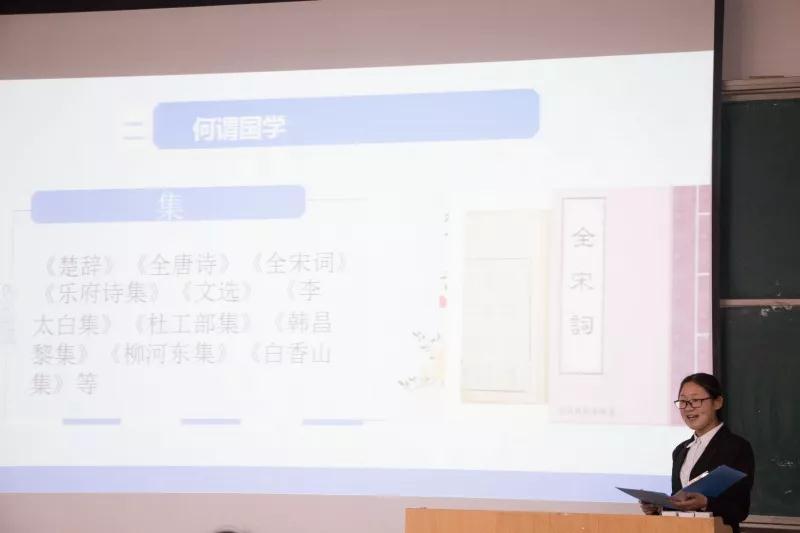 第一位宣讲人物理七班的马艳艳同学从何为国学、国学的意义以及传承国学经典弘扬传统文化这三个方面让大家了解了国学的魅力。响亮的宣讲声透露出对传统文化的强大自信,赢得了大家的热烈掌声。(国学热,即为中国传统文化学习的热潮。近几年来,许多研究中国传统文学的学者,都呼吁、提倡、学习中国传统文化,激起了中国人民对重学中国传统文化的激情。)