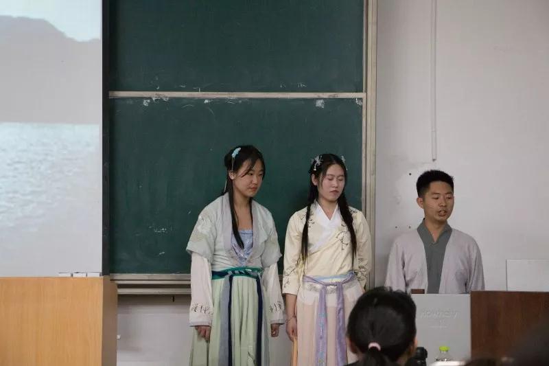 首先,物理师范于云霞、战泽城、王磊为大家带来了朗诵《春江花月夜》,衣着汉服的小姐姐一上场就吸引了大家的目光,配上那仿若从千年前传来的低吟浅唱,让我们不自觉走入了那念与思的月圆之夜。(汉服文化对人们了解本民族传统、加深民族感情具有很大的帮助,对弘扬传统文化具有特殊的意义,也可以增强人们的民族自豪感、凝聚力和爱国心。)