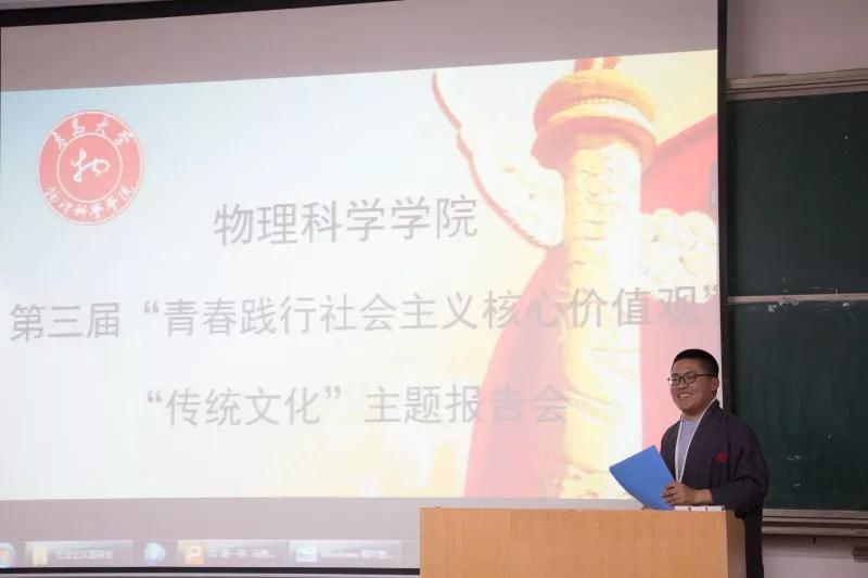 PA集团官方网站第三届青春践行社会主义核心价值观之传统文化主题宣讲会,于5月4日在东校区一教111举行,参加本次活动的有周志强副书记、学工办主任李慧晶老师、团委书记赵斐斐老师以及全体大一同学。