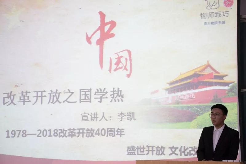 今年是改革开放四十周年,改革开放是中国和世界共同发展进步的伟大历程,40年来,中国人民始终敞开胸襟、拥抱世界,做出了中国贡献。40年来,我们生活发生了翻天覆地的变化,通过视频我们也了解了他人对改革开放的理解。随后,我们与五位优秀的宣讲同学一起重温了改革开放的艰辛历程。
