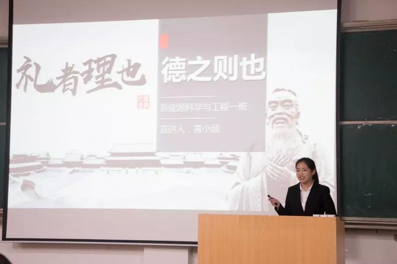 2016级优秀宣讲人黄小涵带领大家重温了“礼”的漫漫演变之路:《礼者理也,德之则也》,深入讲解了“礼”发展历经的四个阶段和“礼"贯穿于中国文化的四个层面,倡导大家做“礼”的践行者和传播者。(大学生礼仪注意事项:不要自视清高、不要强加于人、不要取笑别人、不要乱发脾气、不要打断别人讲话、不要小看仪表。)