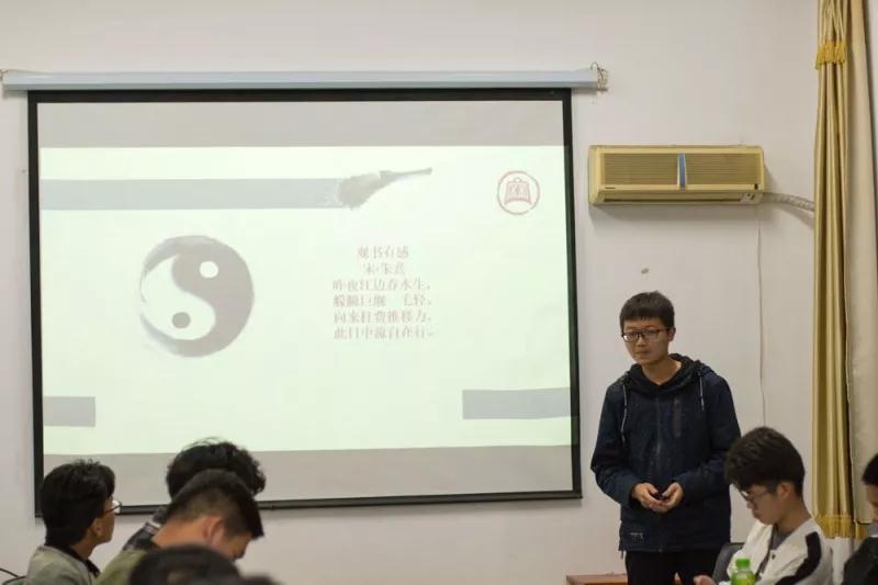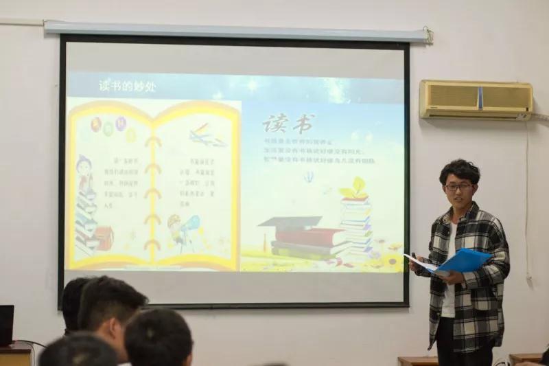 四班桑鸿运同学的报告“畅游书海,塑完美人生”,以朱熹的《观书有感》开始,报告内容以诗句贯穿始终,透露出诗词画意,表明了PA集团官方网站不输文学院的豪气。